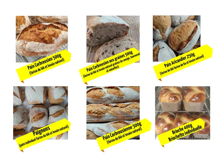 tous les vendredis de 14h à 22h, un dépôt de pains et brioches est à votre disposition et vous pouvez également passer commande